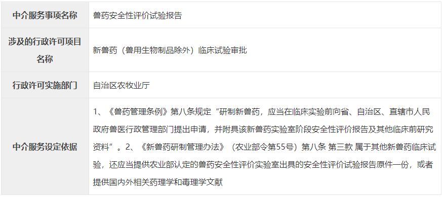 行政审批中介服务事项清单