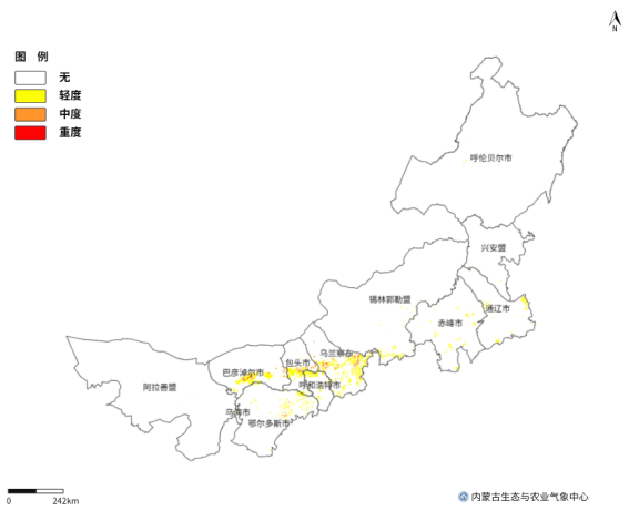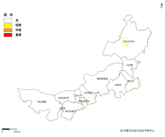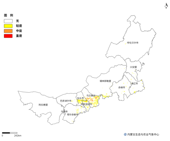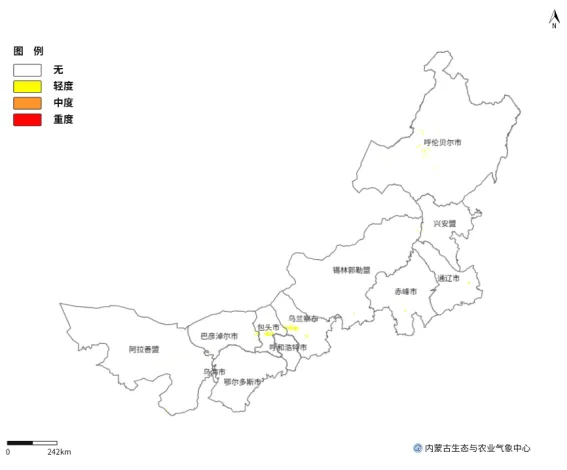图2 4月24日内蒙古地区设施农业大风灾害预报分布图