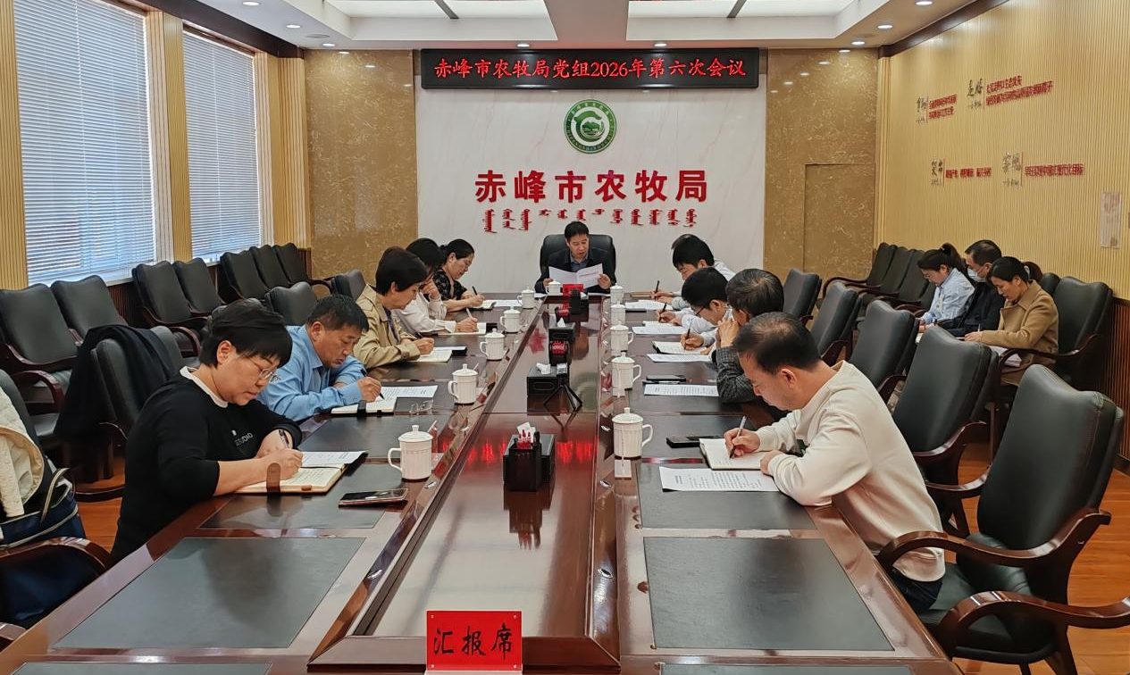 3月27日,赤峰市农牧局党组书记樊洪华主持召开赤峰市农牧局2026年第6次党组会,传达学习习近平总书记近期重要讲话精神,安排部署贯彻落实工作。