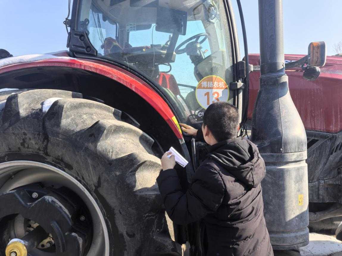 随后,工作组赴赛罕区内蒙古博扬农机专业合作社等主体,开展农机安全生产检查。现场查看了机具存放库棚、维修保养场地及安全消防设施,重点对拖拉机、收割机、打捆机等大型农机的安全性能状况、日常维护记录以及操作人员持证上岗情况进行了查验。检查消防设施配备情况,各类灭火器材等设施配备是否齐全有效,确保应急处置能力。同时,工作组与合作社负责人及机手进行交流,强调要持续强化安全生产意识,严格落实安全操作规程,加强农机具日常检查与维护,切实消除安全隐患,确保农业生产作业安全有序进行。并开展安全教育宣传,发放安全作业操作标识,强化“安全操作、遵规守法”意识。