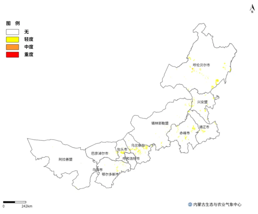图1 4月15日内蒙古地区设施农业大风灾害预报分布图