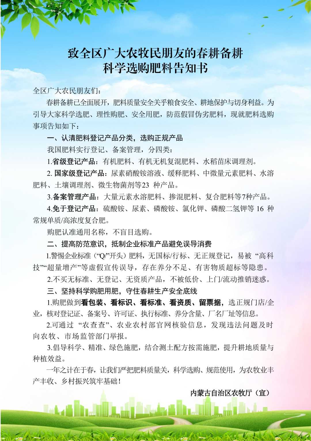 【春耕备耕】致全区广大农牧民朋友的春耕备耕科学选购肥料告知书