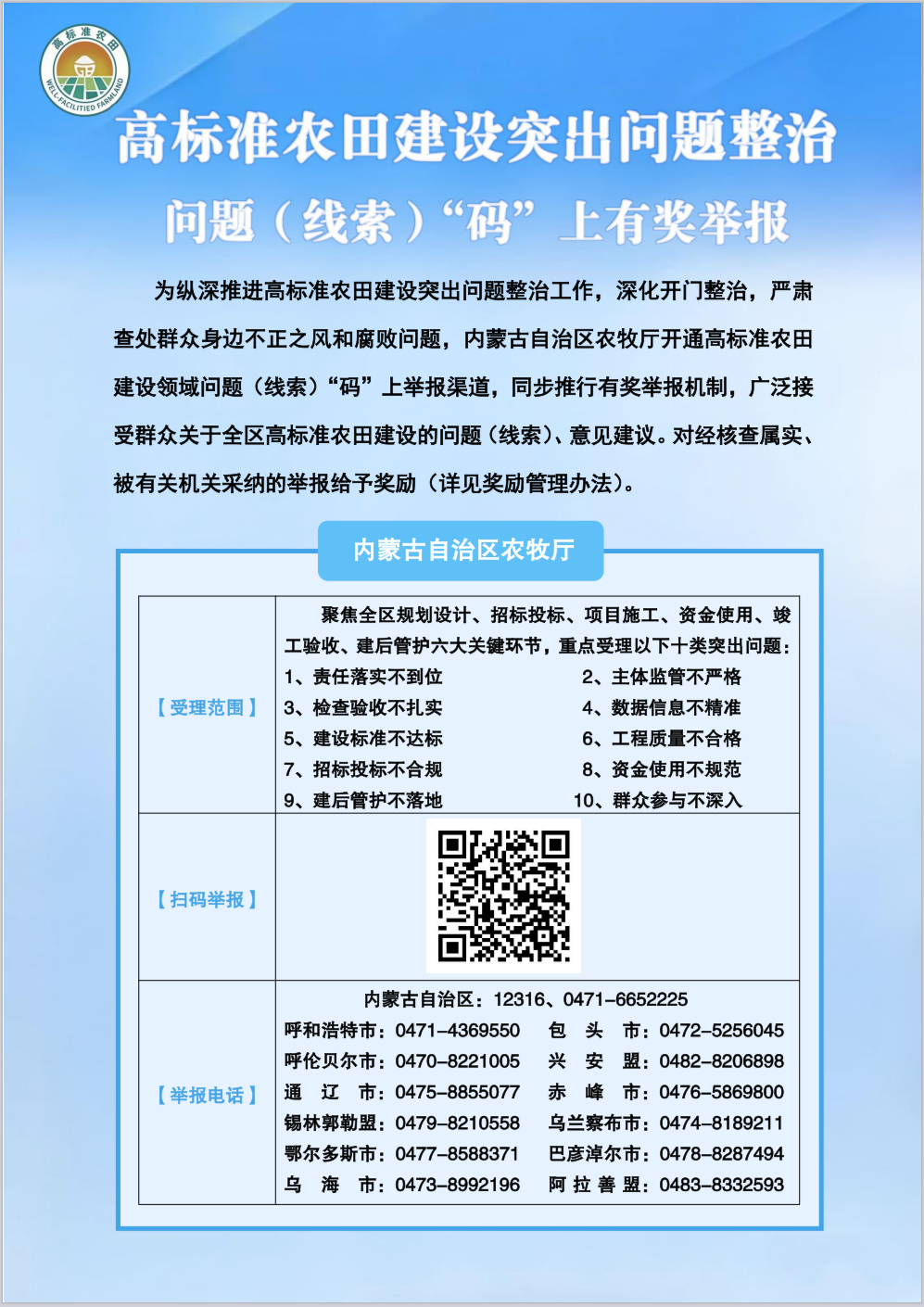 高标准农田建设突出问题整治问题(线索)“码”上有奖举报