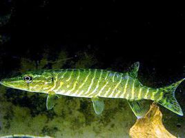 狗鱼是鲑形目狗鱼亚目狗鱼科的唯一属。共5种,2亚种;中国有2种,即黑斑狗鱼和白斑狗鱼。体细长,稍侧扁;口裂极宽大,约为头长的一半;齿发达;背鳍及臀鳍位靠后并相对;体侧有斑。狗鱼生长快,肉质细嫩洁白,味道鲜美,是很好的食用经济鱼类。但因狗鱼为肉食性,贪食而食量大,对其他经济鱼类有很大的危害。