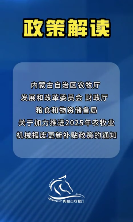 【政策解读】《内蒙古自治区农牧厅 发展和改革委员会 财政厅 粮食和物资储备局关于加力推进2025年农牧业机械报废更新补贴政策的通知》