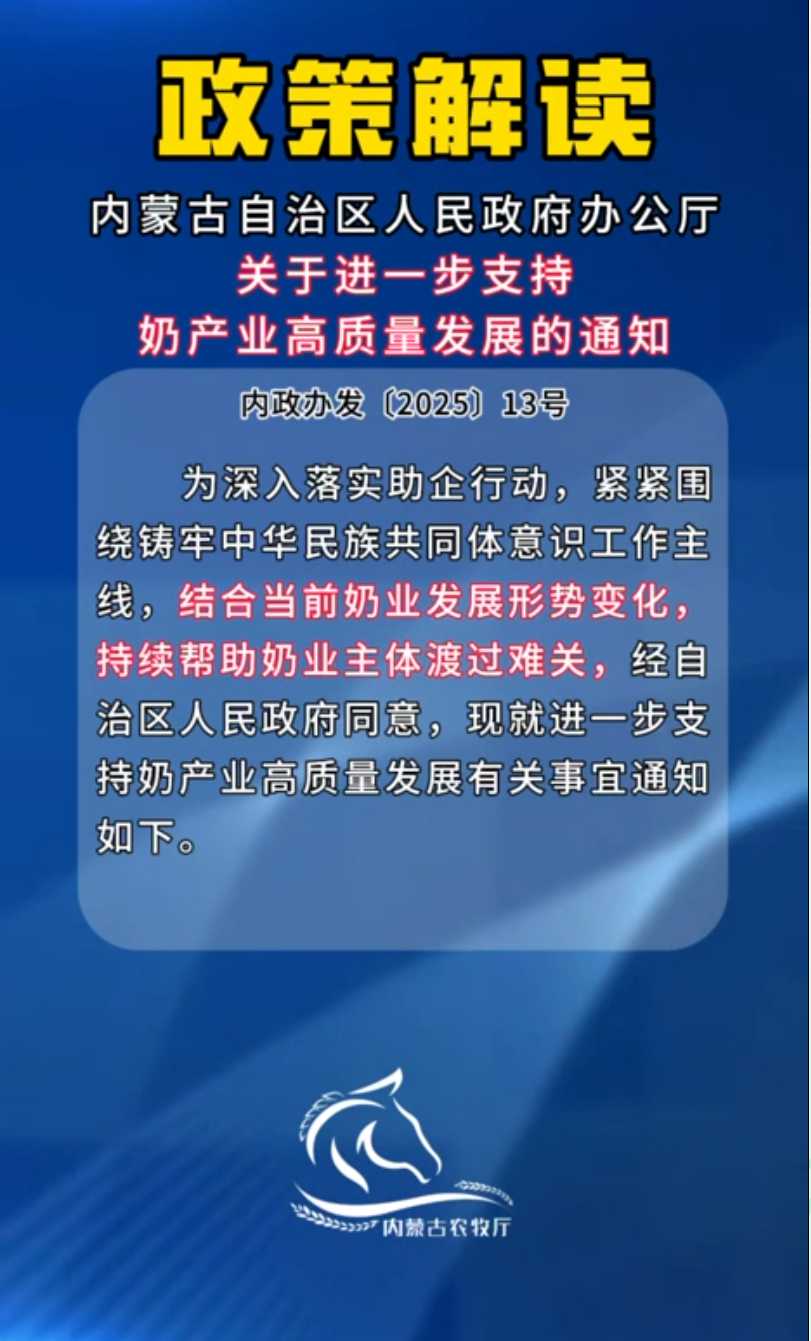 【政策解读】《内蒙古自治区人民政府办公厅关于进一步支持奶产业高质量发展的通知》