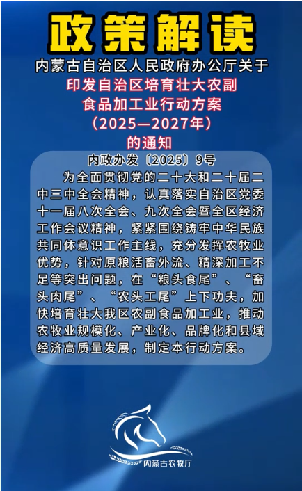 【政策解读】《内蒙古自治区人民政府办公厅关于印发自治区培育壮大农副食品加工业行动方案(2025-2027年)的通知》